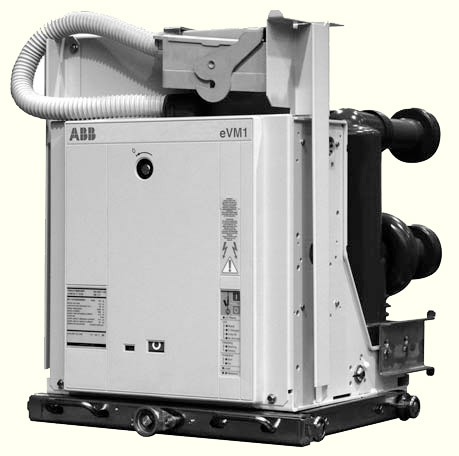 Вакуумный выключатель eVM1/P 17.12.16 (выкатной вариант) выпускается концерном АББ на базе испытанной технологии выключателей серии VM1 с электромагнитным приводом. Непосредственно в конструкцию вмонированы датчики тока с передачей сигнала по контрольному кабелю на встроенное электронное устройство управления, которое позволяет наблюдать за всеми функциями выключателя и состоянием всей ячейки. При этом значительно сокращается необходимость в электропроводке и связующих звеньях. Настройка параметров релейной защиты, телемеханики и т.д. проводится с помощью программного обеспечения. Вакуумные прерыватели, залитые эпоксидной смолой, загерметизированные на весь срок службы. Повышение безопасности и надежности обслуживания.