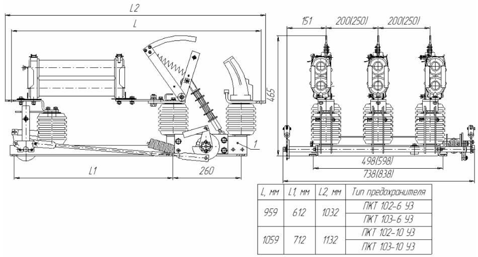 Рис.1 Общий вид выключателя нагрузки автогазового ВНА-10/630-20У2 с приводом ПР..-10У2