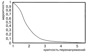 Максимальные кратности перенапряжений практически не зависят от номинального напряжения сети и величины емкостного тока. Вероятность появления заданной величины кратности перенапряжений представлена на рис.1.