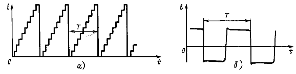 На рис. 12.1 - 12.3 все кривые строго периодичны (период повторения Т) и представляют собой примеры несинусоидальных периодических токов.
