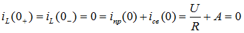 А - постоянная интегрирования, определяемая из начальных условий при t = 0 с использованием законов коммутации, в частном случае первого закона для индуктивности
