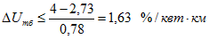 DUтб - табличное значение удельной величины потери напряжения в процентах на 1 квт м, квт км или Мвт км.