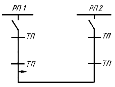 Распределительный пункт - это распредели-тельное устройство 6 - 20 кВ, предназначенное для приема по питающим линиям электроэнергии от ЦП и передачи ее в распределительную сеть. В распределительный пункт входят сборные и соединительные шины, коммутационные аппараты, устройства защиты, автоматики и телемеханики, а также измерительные приборы. Распределительный пункт может быть совмещен с трансформаторной подстанцией, обслуживающей расположенных вблизи потребителей. Из распределительного пункта по разным направлениям отходят кабельные линии РКЛ, питающие ряд трансформаторных подстанций ТП и называемые распределительными.