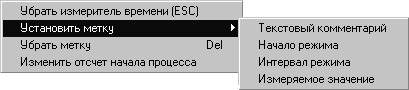Комментарии, в виде действующих значений сигналов, могут быть внесены на любом месте основного экрана в режиме ввода комментариев – _25V_ (см. стр. 28), или путём выбора пункта «Установить метку»/«Действующее значение» из меню, выпадающего по нажатию правой кнопки мыши в дочернем окне (см. стр. 9).