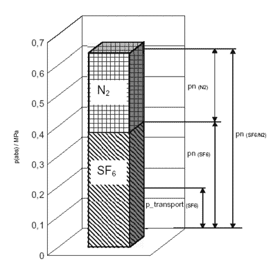 При транспортировке полюсы заполнены элегазом с транспортировочным давлением (0.12 - 0.15 Мпа абс при температуре 20 С и нормальном атмосферном давлении 1013Па). После монтажа полюса заправляются газом до номинального давления.