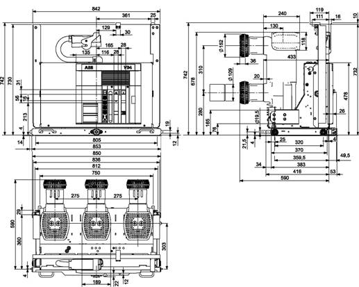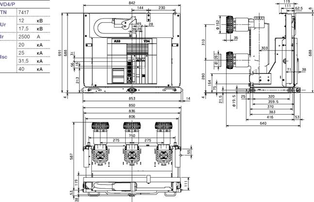Номинальный непрерывный ток 2300 А гарантирован при естественной вентиляции. Номинальный непрерывный ток 2500 А гарантирован при принудительной вентиляции.