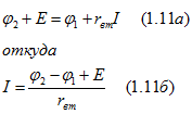 Формула (1.12а) представляет собой закон Ома для участка цепи (схемы) с ЭДС (обобщенный закон Ома).